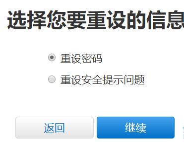 3、选择重设密码的选项,然后选取“继续”。