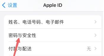 2、点击“密码与安全性”选项。