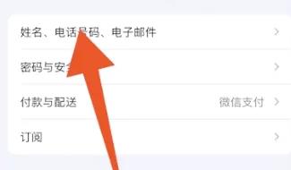 2、打开Apple ID页面后,选择并点击【姓名、电话号码、电子邮件】。