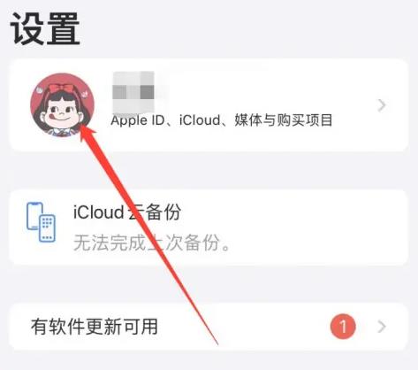 1、进入设置后,点击上方的AppleID账户,打开账户设置;