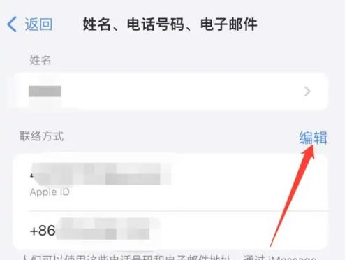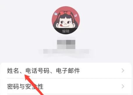 2、在AppleID账户中,点击打开姓名电话电子邮件设置;