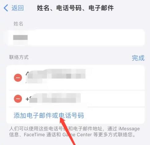 4、在编辑页面,点击添加新的电话号码/电子邮件;