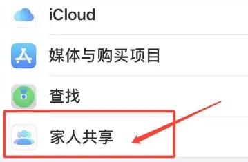 1、进入设置中的Apple ID页面,点击“家人共享”
