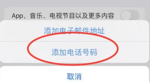 5、在选项中选择添加电话号码,绑定新的手机号并保存;