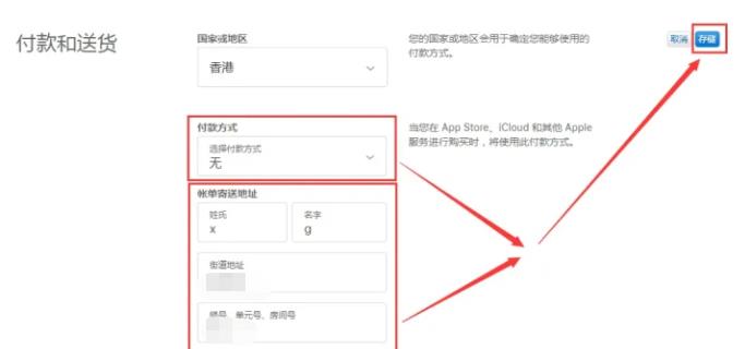 5、付款方式选择“无”,账单寄送地址随便填写,如果怕填写错误,就按照下图填写一样。填写完成之后,点击“储存”。