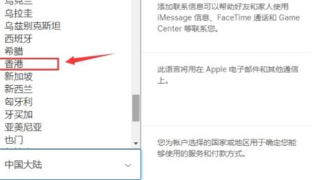 3、在账户的「国家或地区」中找到「香港」选择即可。
