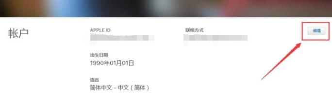 2、把注册好了的国内Apple ID从http://appleid.apple.com登录,登录后进入到苹果账号的管理中心,点击“编辑”账户。