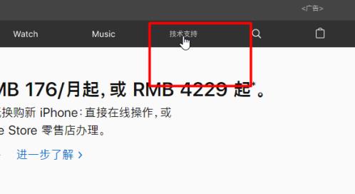 1、第一步,打开浏览器,搜索并进入苹果官网,点击上方的技术支持选项。
