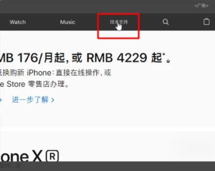 2、接下来需要在苹果官网界面顶端找到【技术支持】