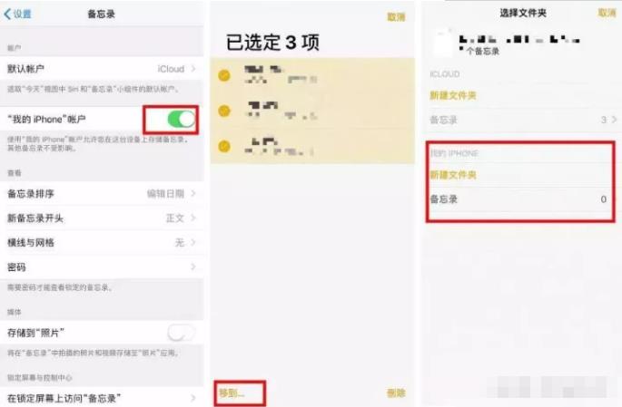 如果你在使用 iCloud 的备忘录,则需要进行以下的备忘录转移操作。首先,在「设置 → 备忘录」中打开「我的 iPhone 账户」,其次,进入手机备忘录应用,选择所有保存在 iCloud 的备忘录,并将其移动到「我的 iPhone 账户」中。在「设置 → 账户 → iCloud → 钥匙串」中将钥匙串关闭,并选择将数据保留在本机。