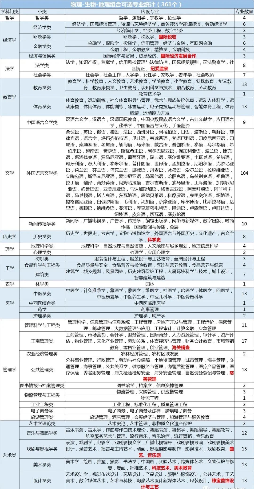 物生地可选专业一览表