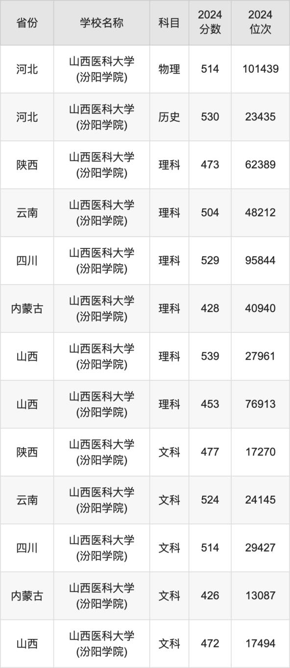 一、2024山西医科大学(汾阳学院)录取分数线