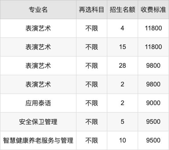 | 高职高专批 | 物理 | 表演艺术 | 4 |