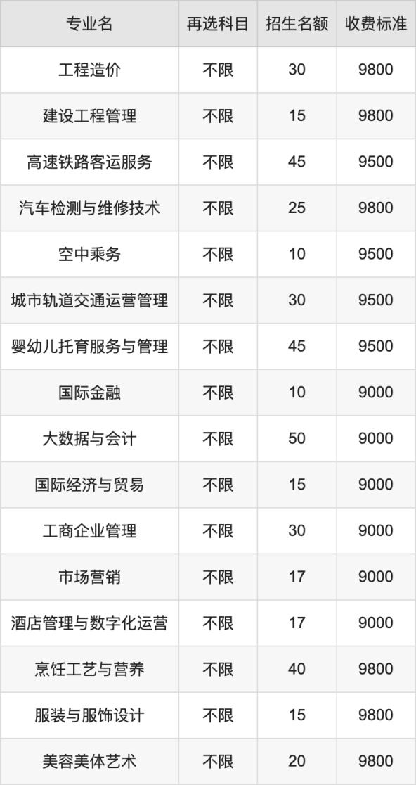 | 高职高专批 | 物理 | 国际经济与贸易 | 15 |