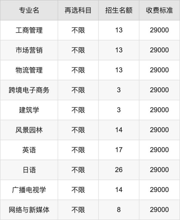 16.物流管理:学费是29000元