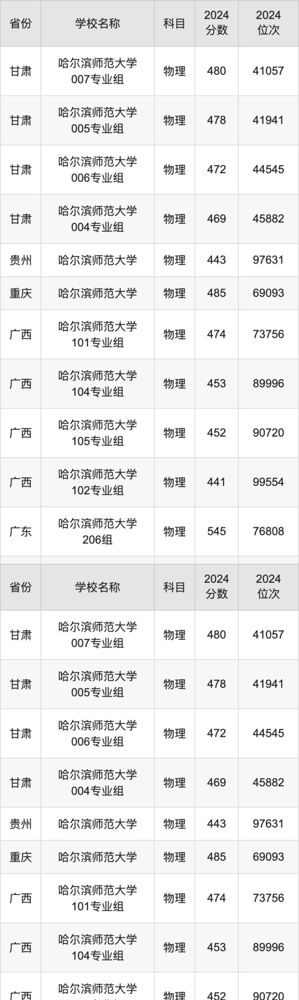 可见,哈尔滨师范大学的不同专业组,在“招生专业、录取分数线”等方面有较大区别。物理类专业组之间的分数线差距高达102分、历史类专业组之间的分数线差距高达83分。