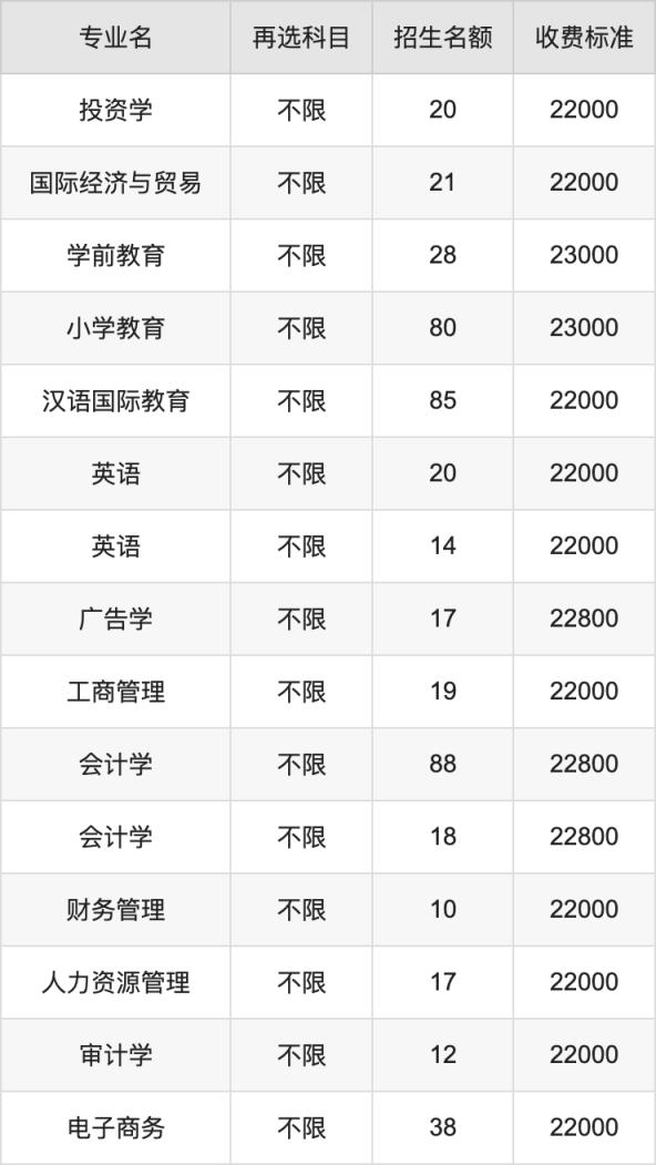 2.国际经济与贸易:学费是22000元