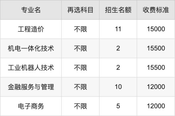 | 高职高专批 | 物理 | 金融服务与管理 | 6 |