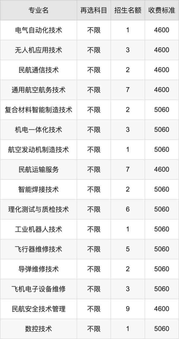 | 高职专科批 | 历史 | 通用航空器维修 | 2 |