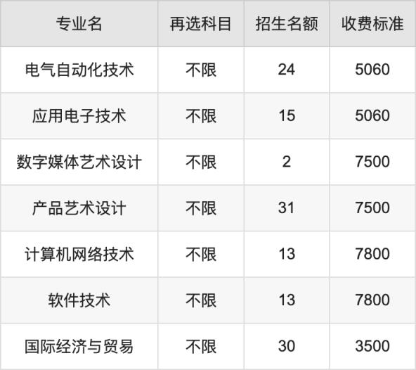| 高职专科批 | 历史 | 国际经济与贸易 | 30 |