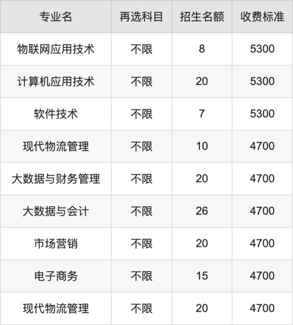 | 专科批 | 物理 | 大数据与财务管理 | 12 |
