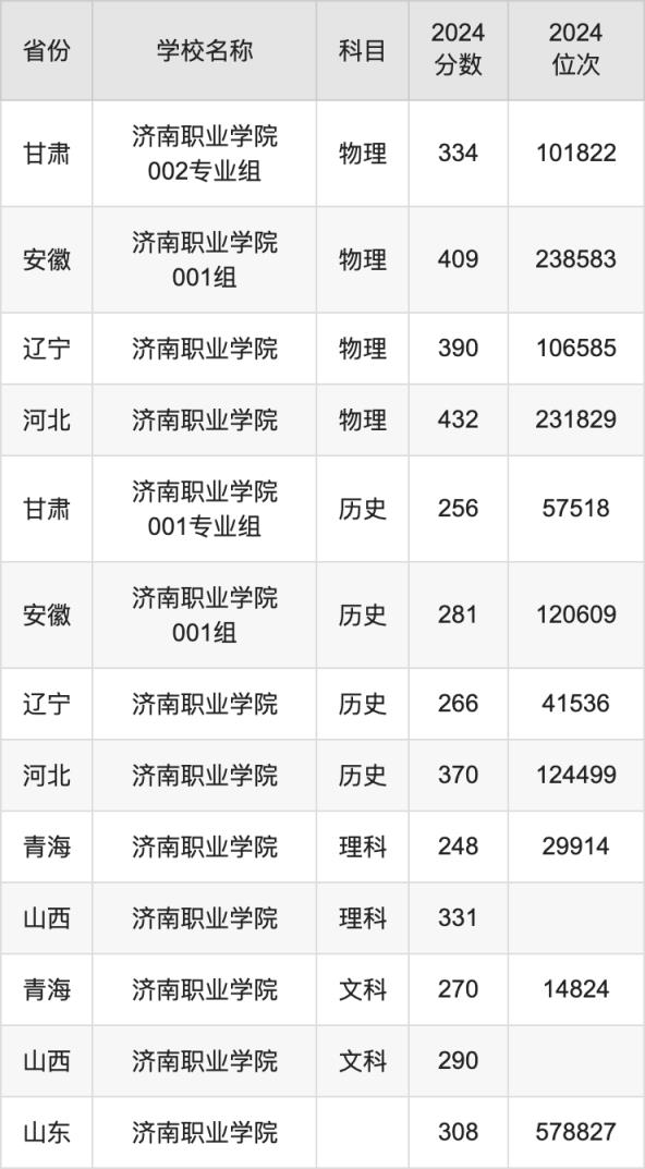 2024济南职业学院录取分数线汇总:全国各省最低多少分能上
