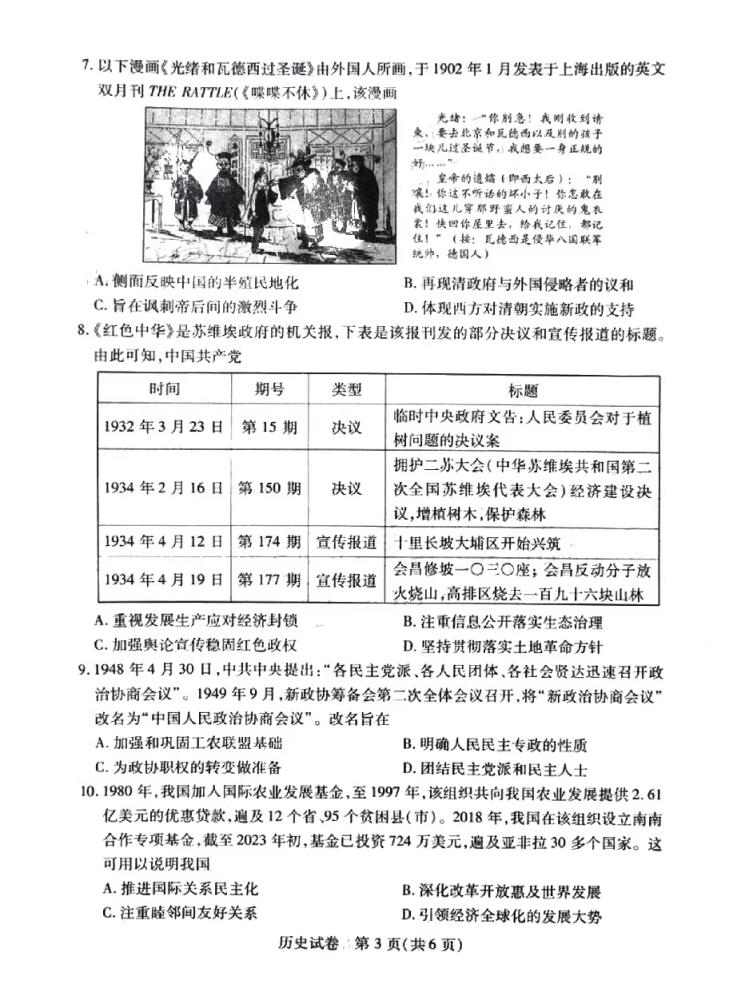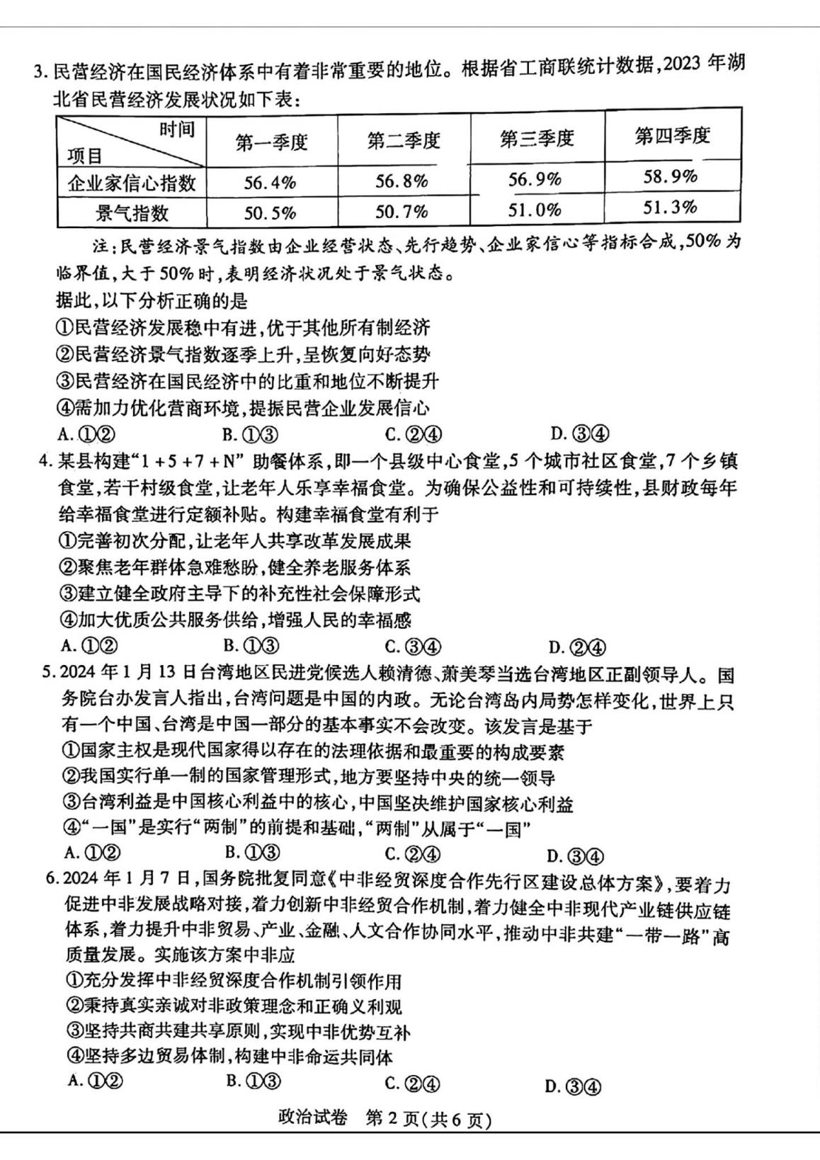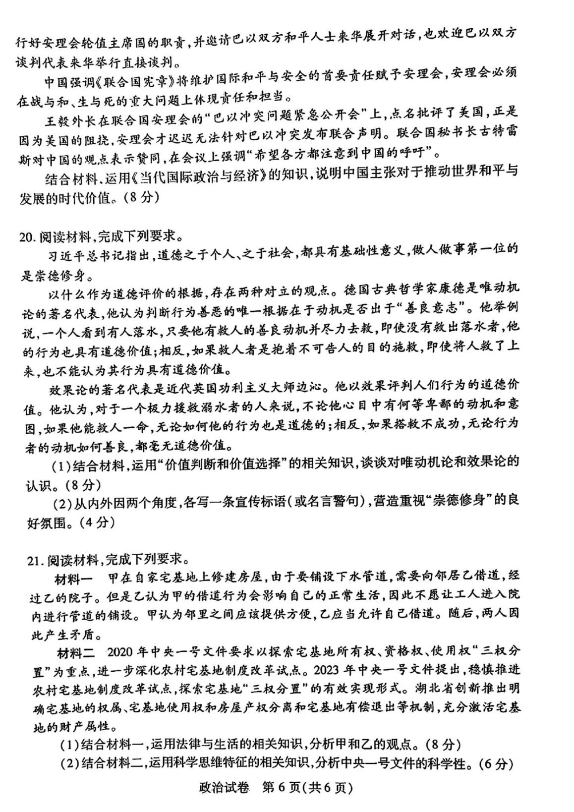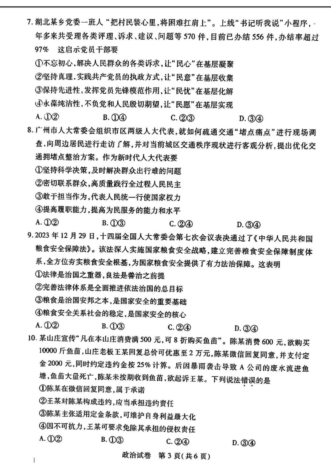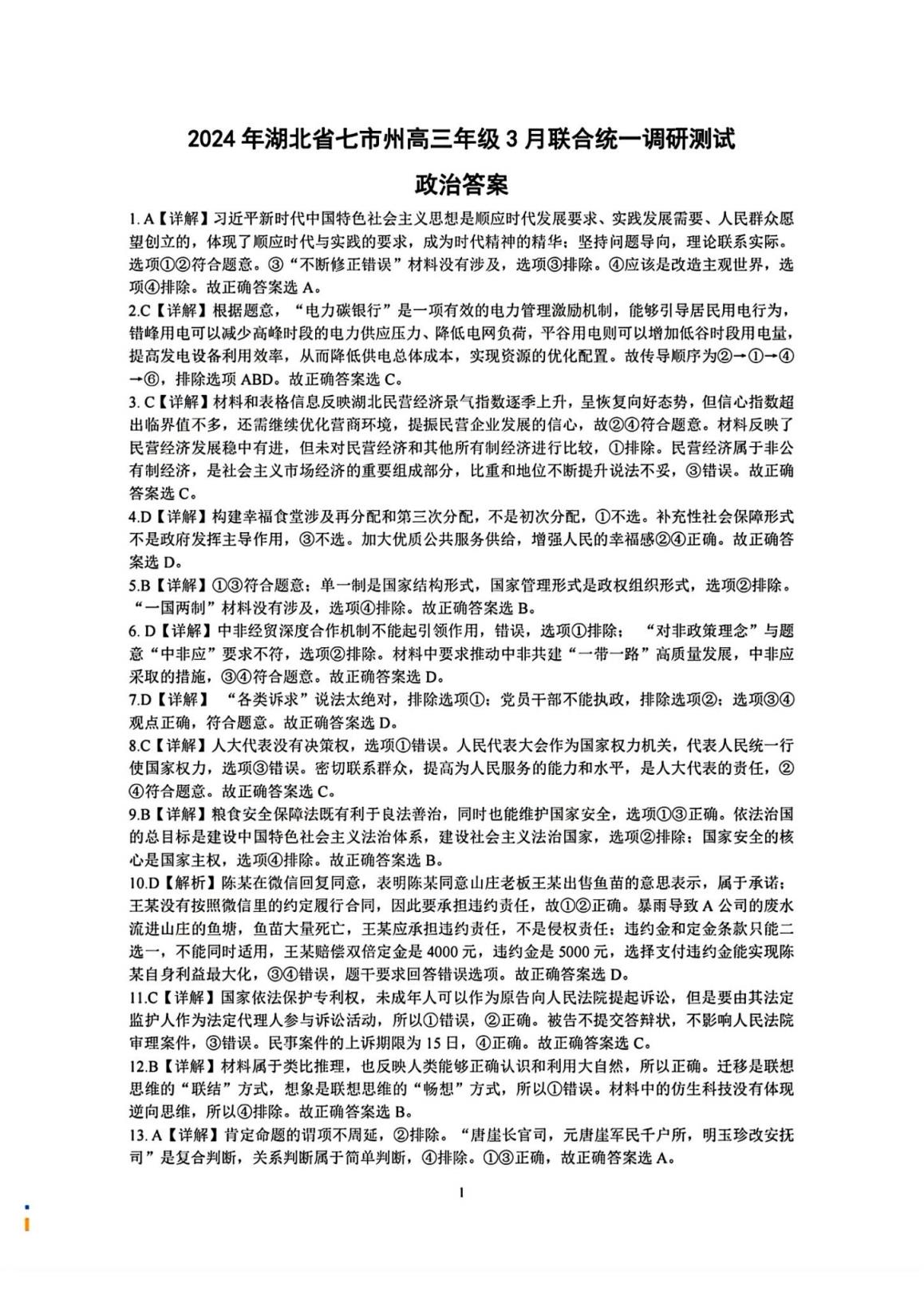 五、湖北省七市州联考2024物理/历史试题及答案解析