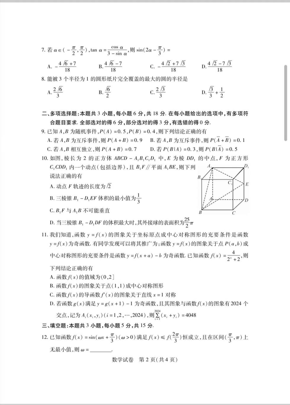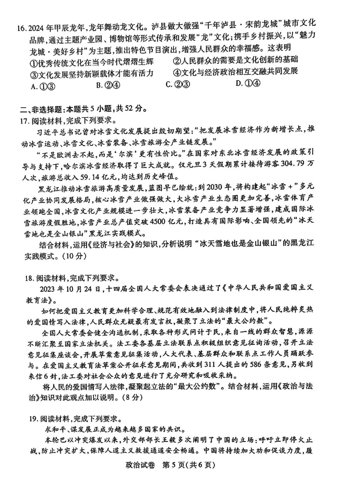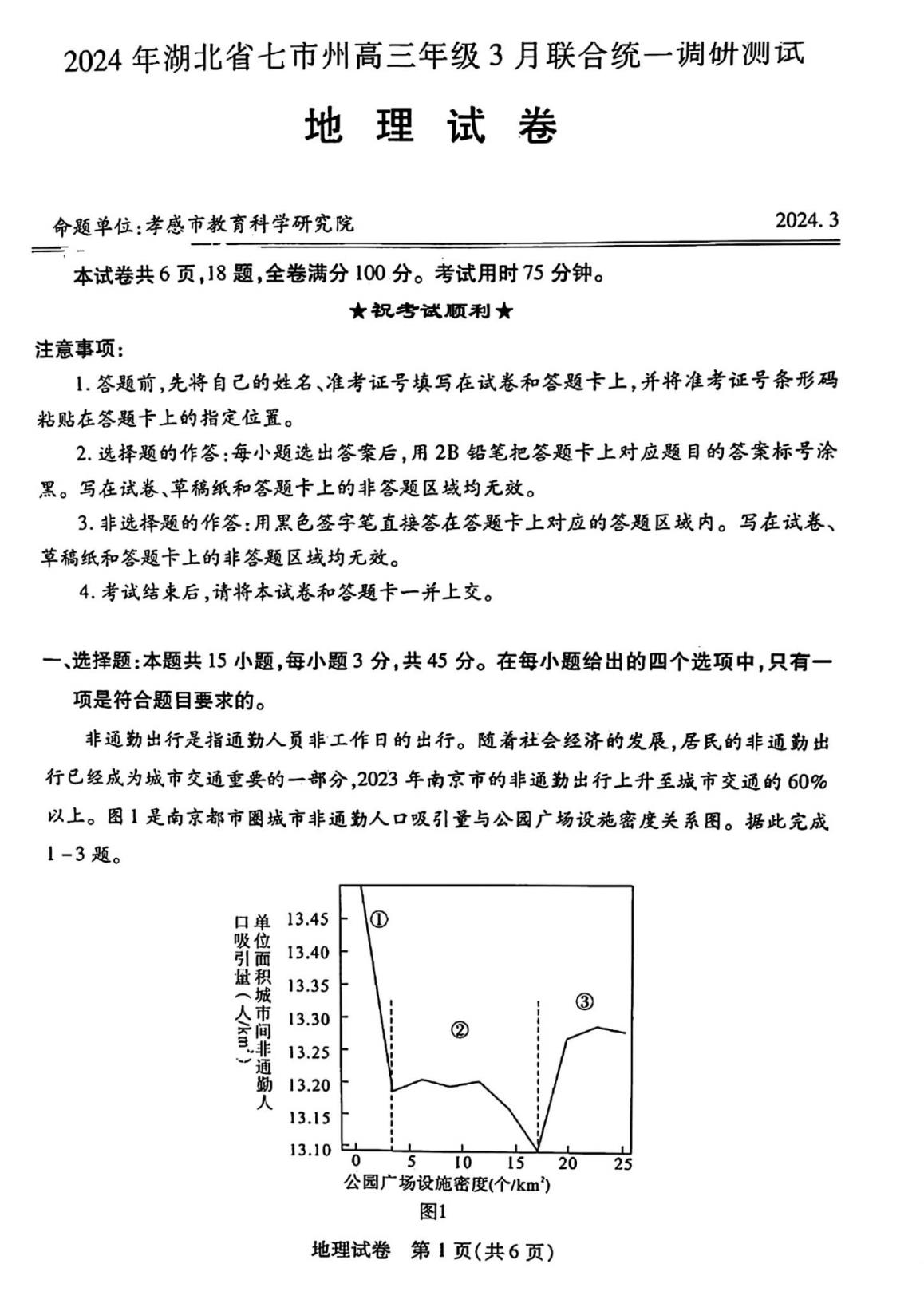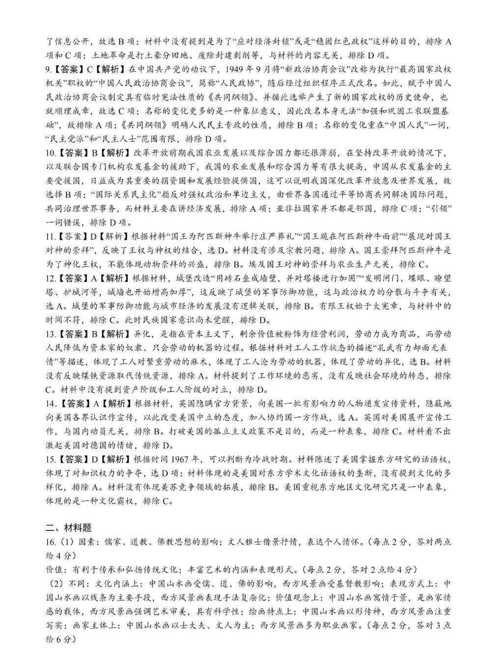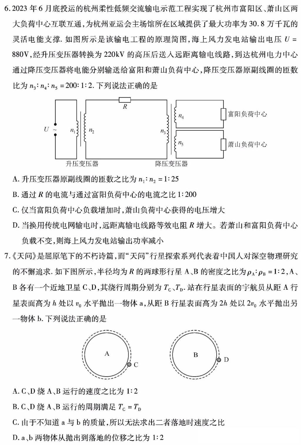 五、湖北省七市州联考2024物理/历史试题及答案解析