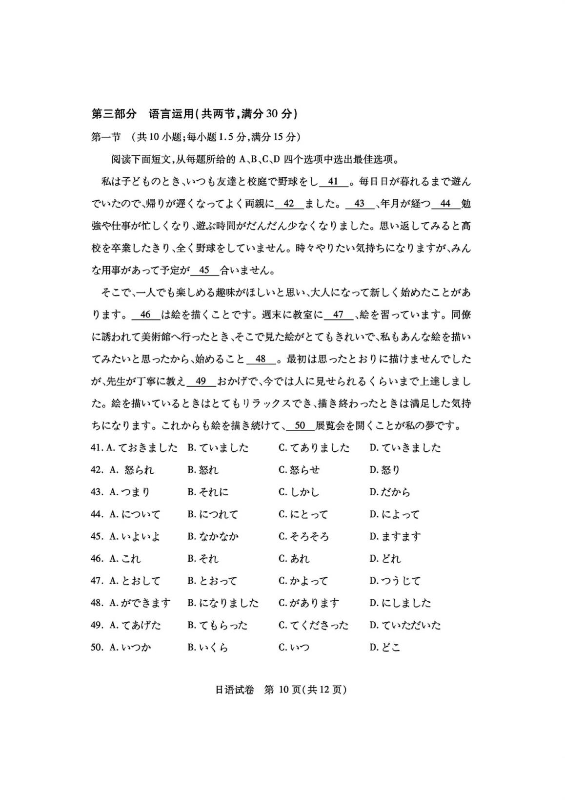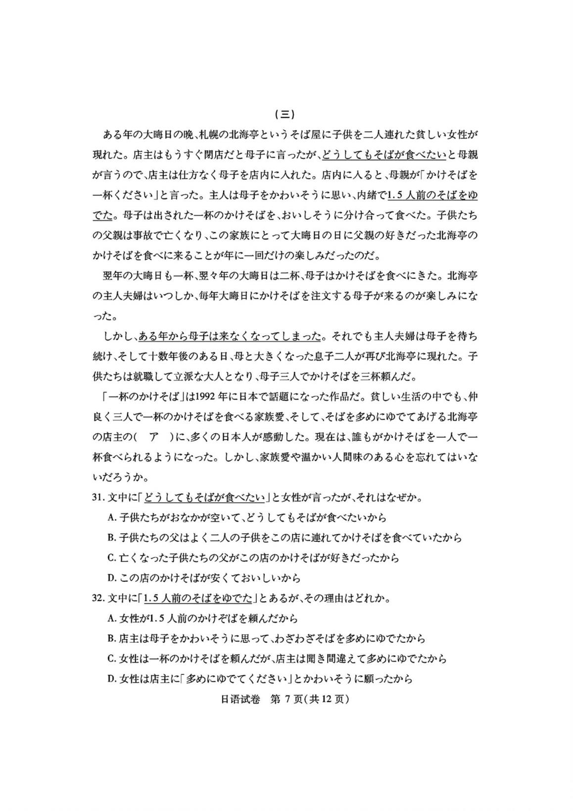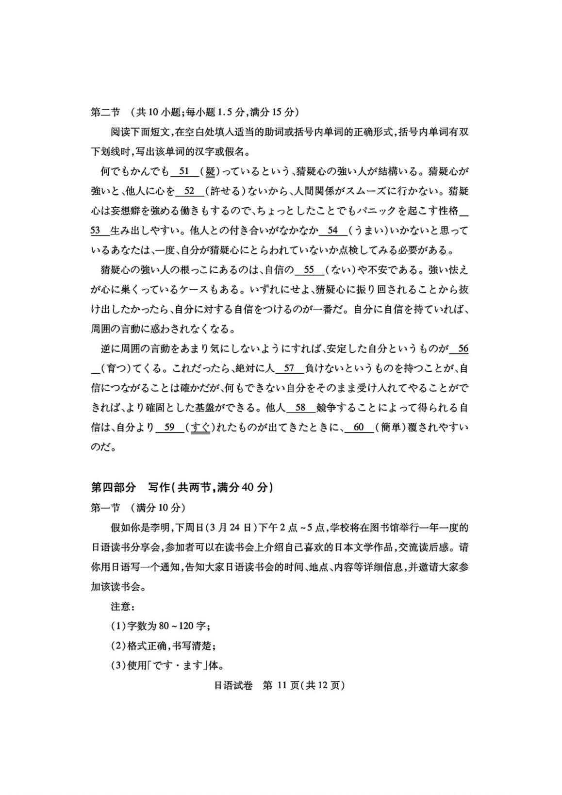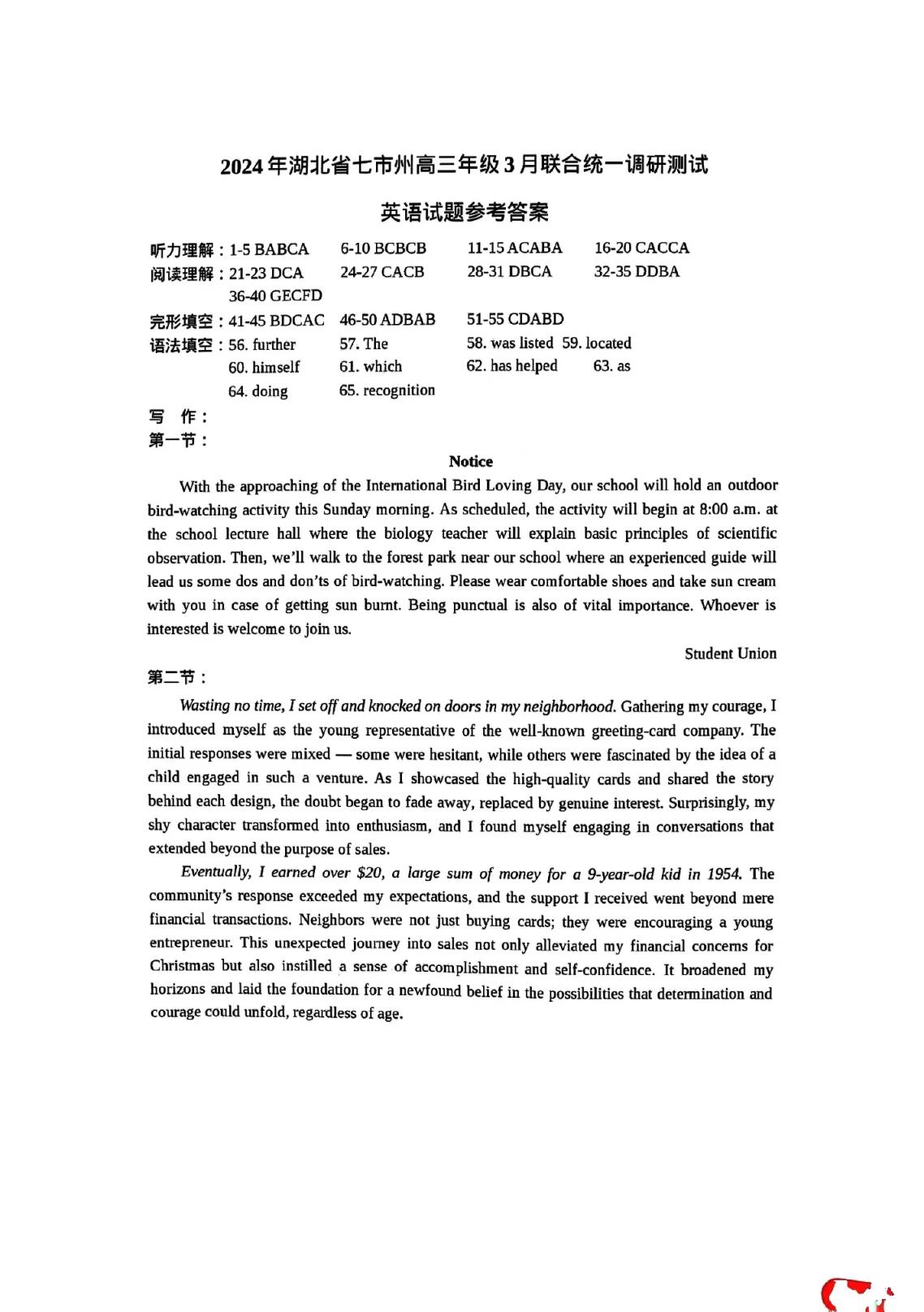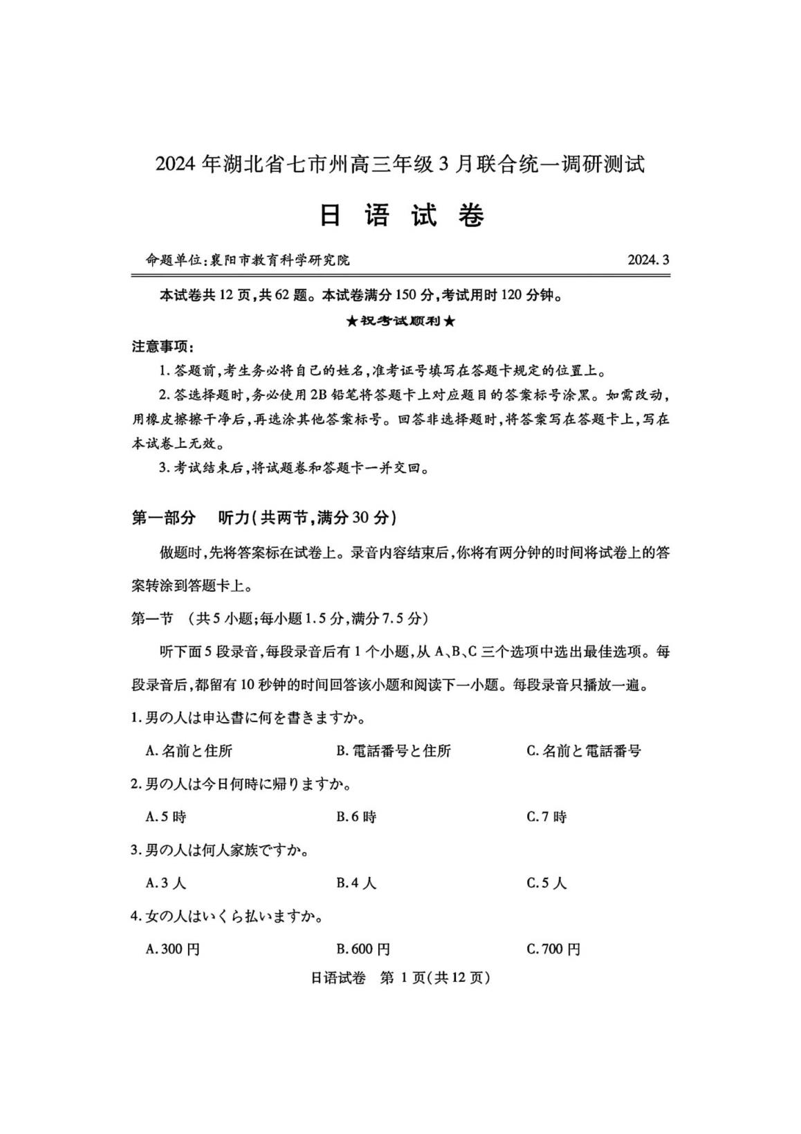 四、湖北省七市州联考2024英语/日语试题及答案解析