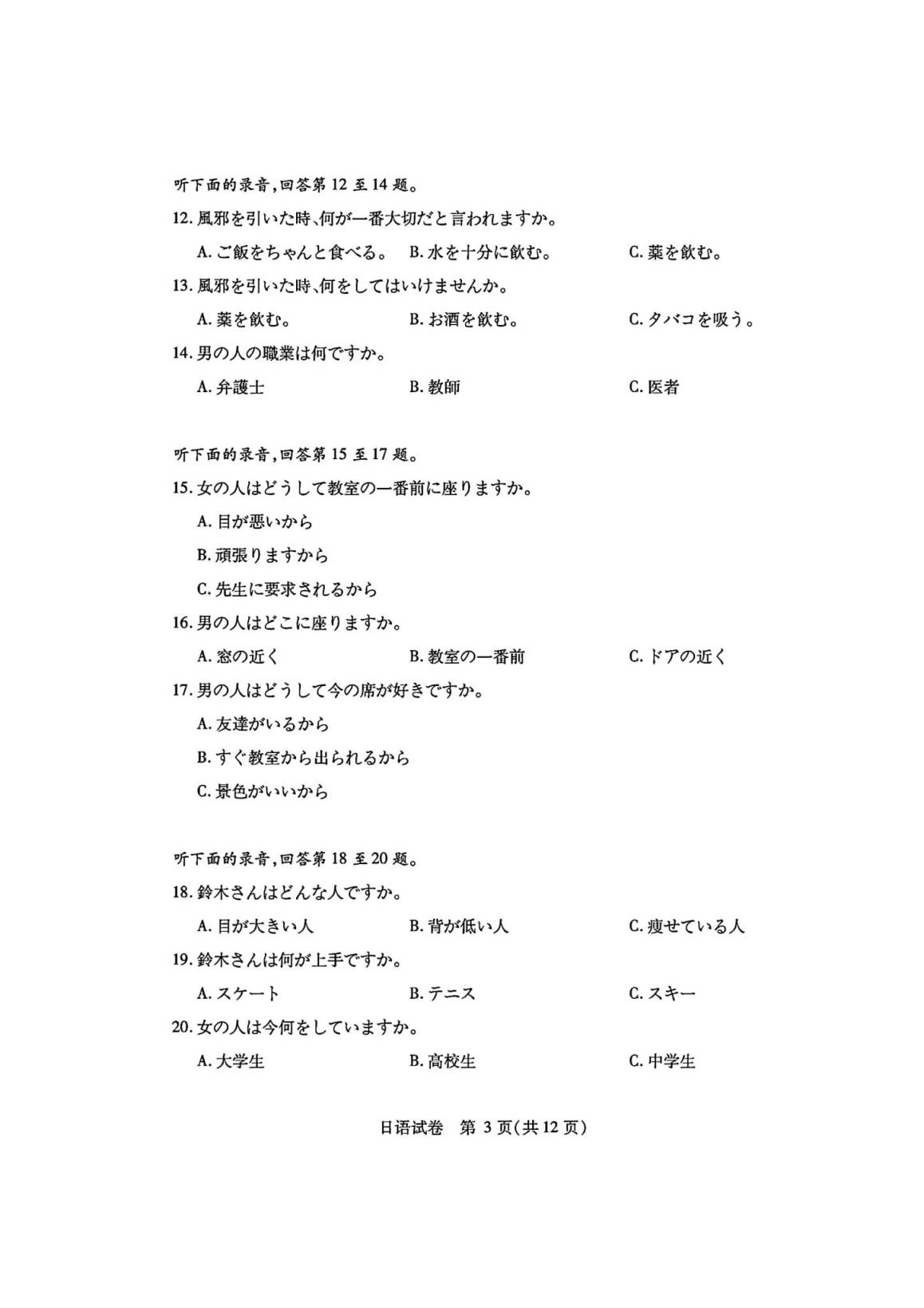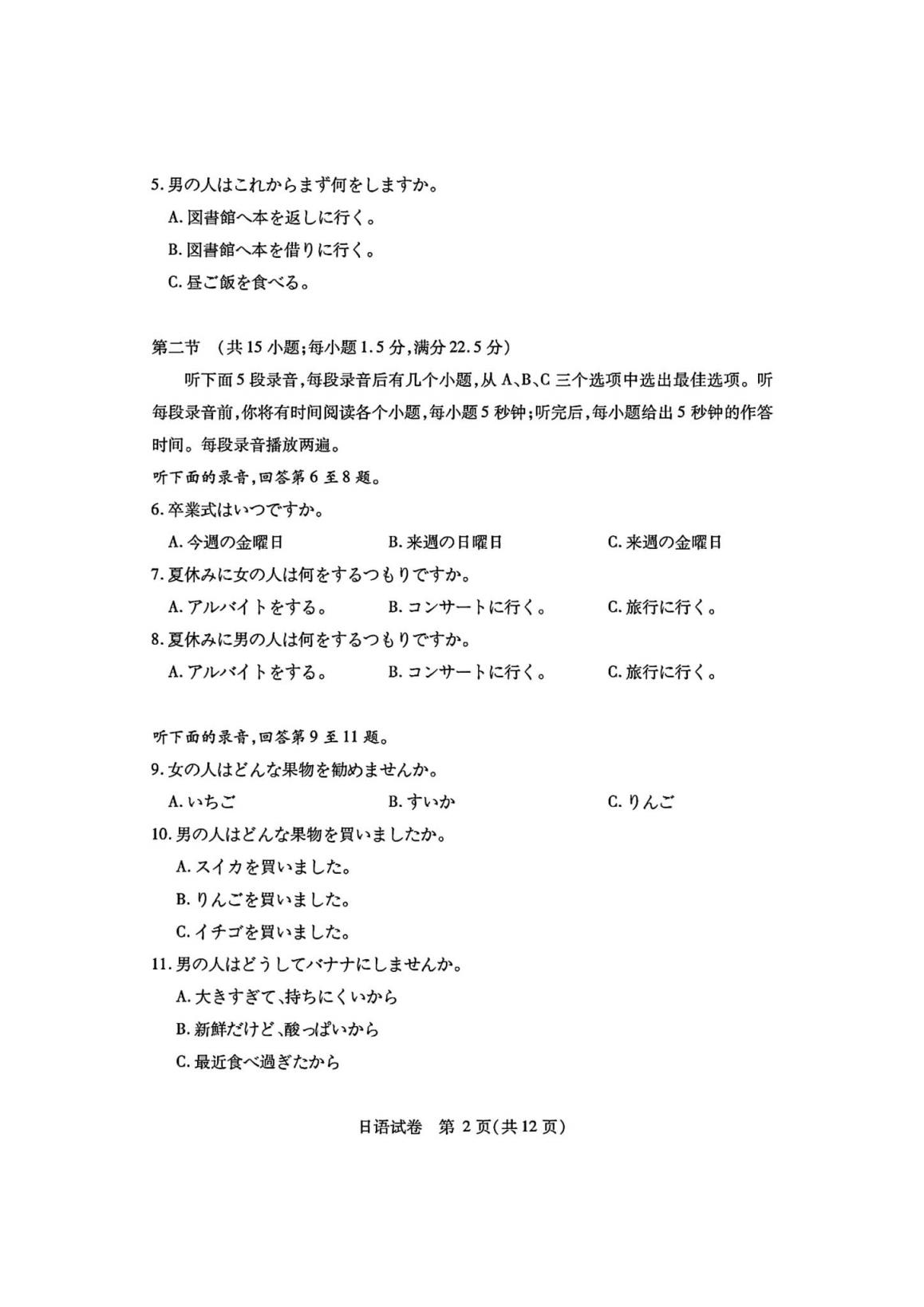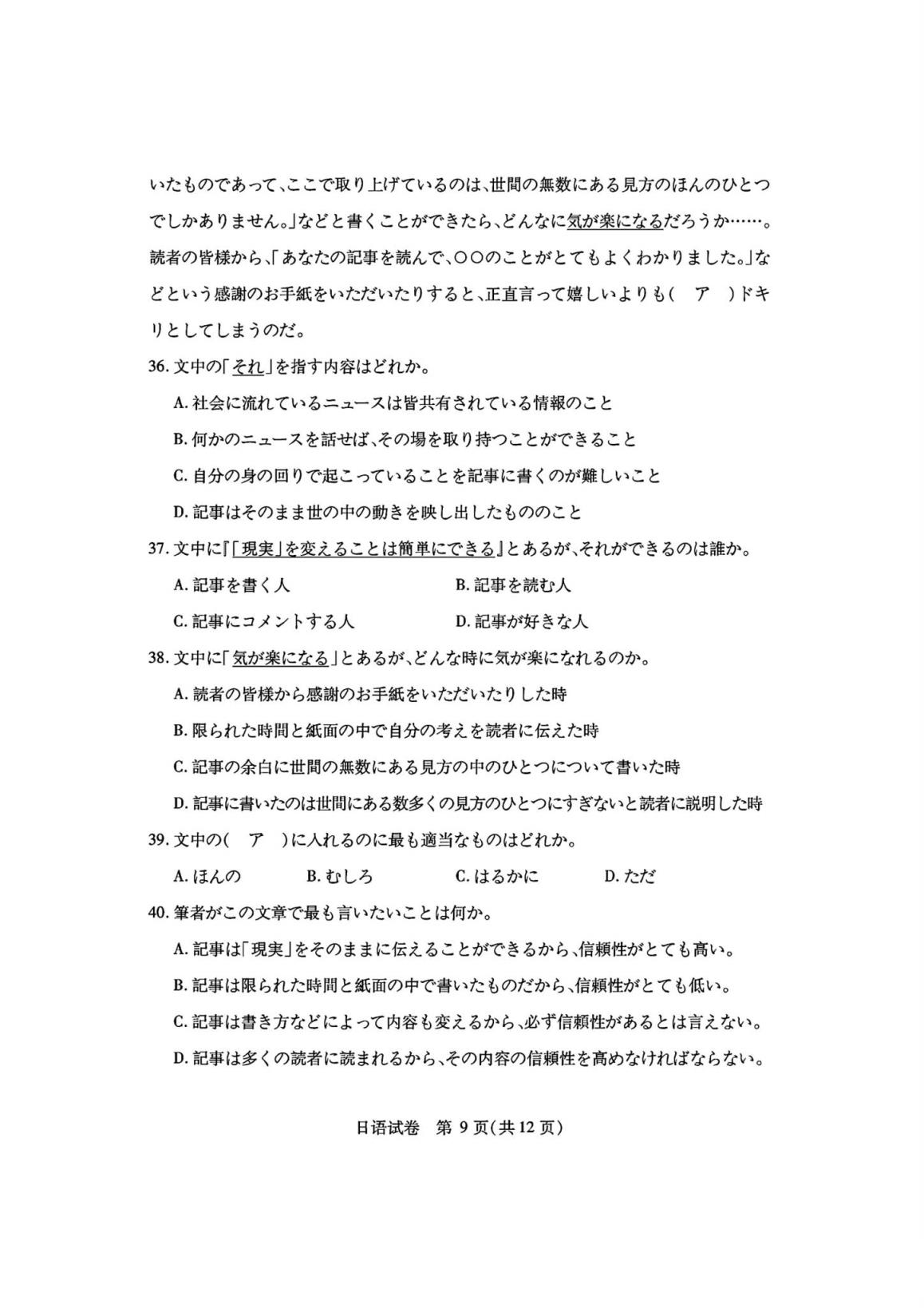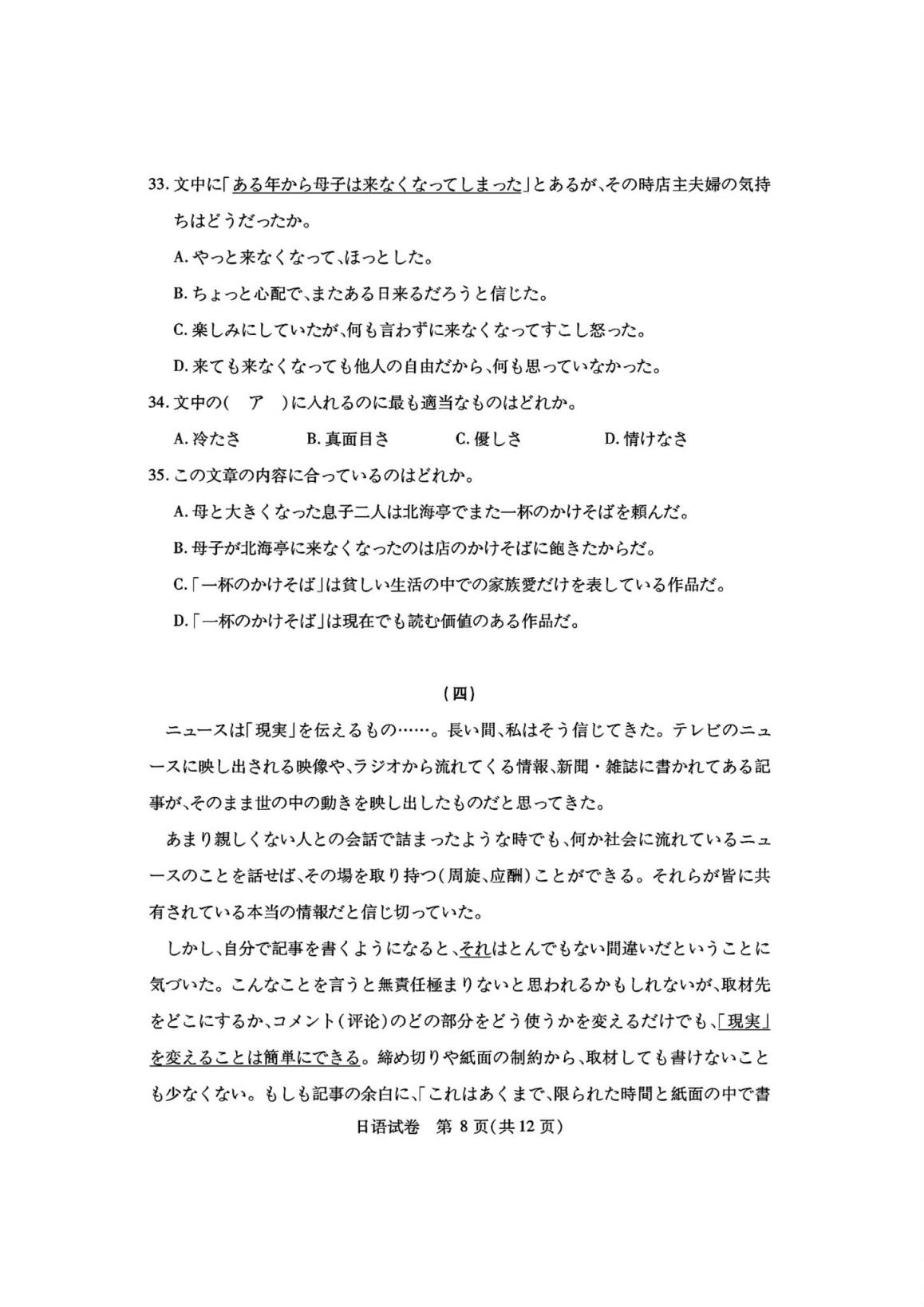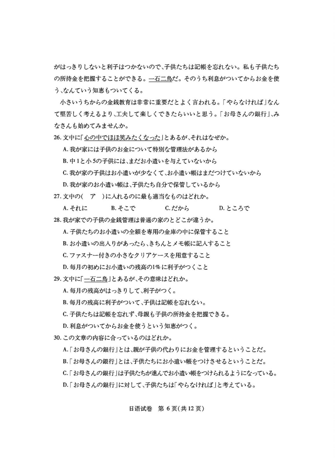 四、湖北省七市州联考2024英语/日语试题及答案解析