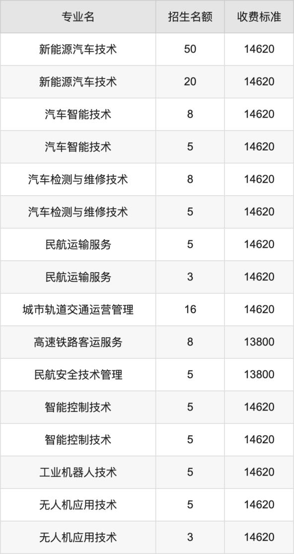 天府新区信息职业学院在文科专科批招生的各个专业,每年的学费是12800元-14620元。招生人数最多的专业是新能源汽车技术,2024年招50人,学费是14620元。