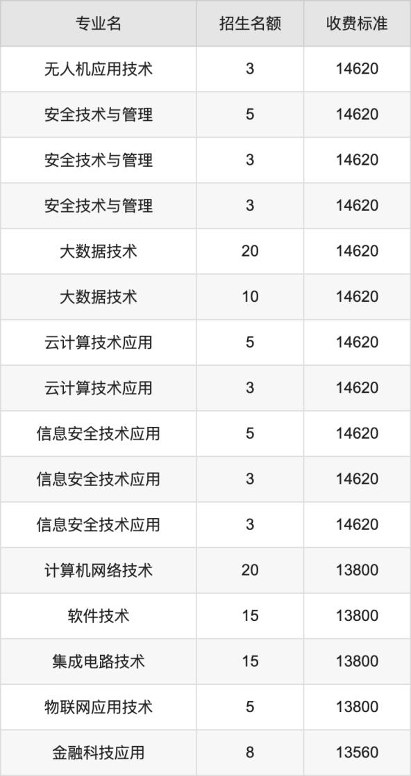 天府新区信息职业学院理科专科批共计50个招生专业,各专业每年的学费是12800元-14620元。