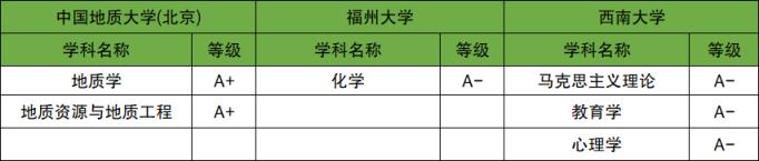 根据2023年软科中国大学排名,与西南大学综合实力相当的分别为中国地质大学(北京)和福州大学,本文整理了北地、福大、西南大在全国第四轮学科评估中A类等级的学科,中国地质大学(北京)获评A+的学科最多。