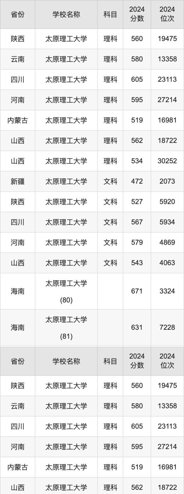 2024太原理工大学录取分数线汇总:全国各省最低多少分能上