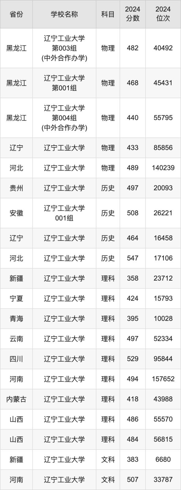 2024辽宁工业大学录取分数线汇总:全国各省最低多少分能上