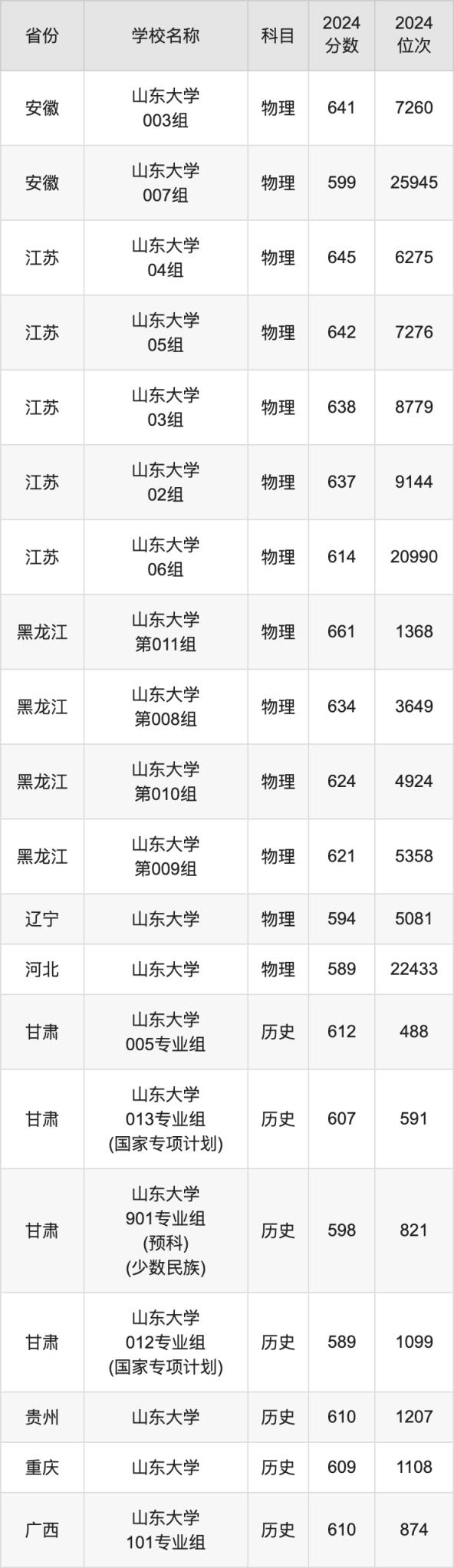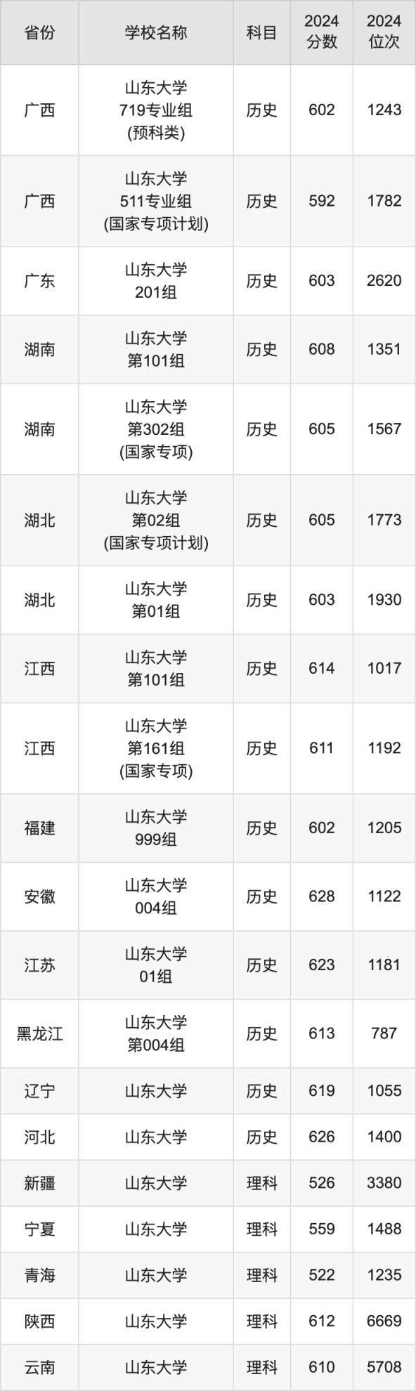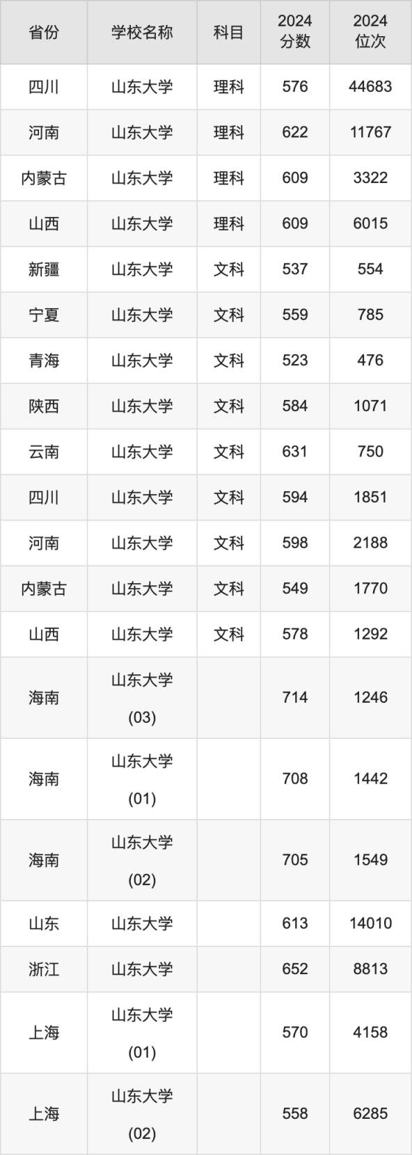 2024山东大学录取分数线汇总:全国各省最低多少分能上