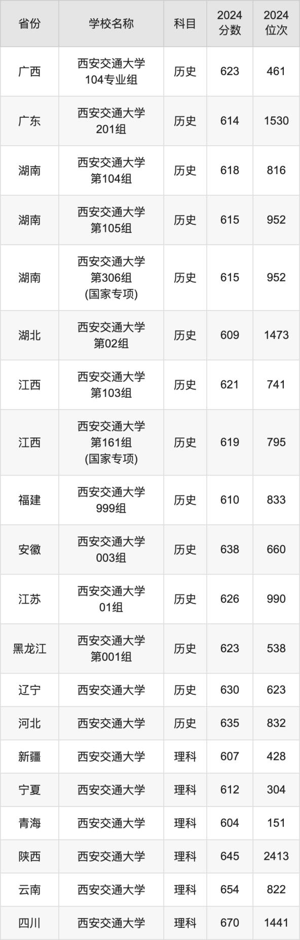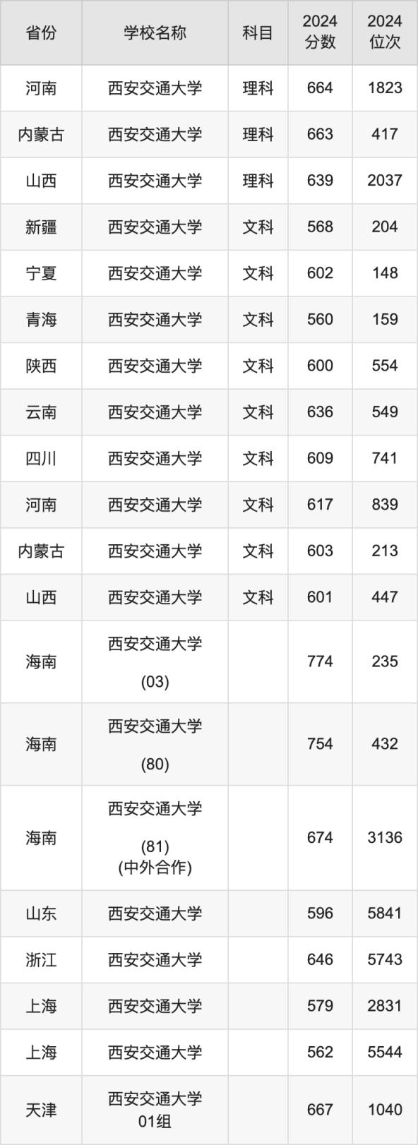 2024西安交通大学录取分数线汇总:全国各省最低多少分能上