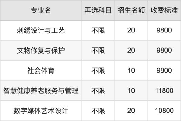| 高职高专批 | 历史 | 刺绣设计与工艺 | 20 |