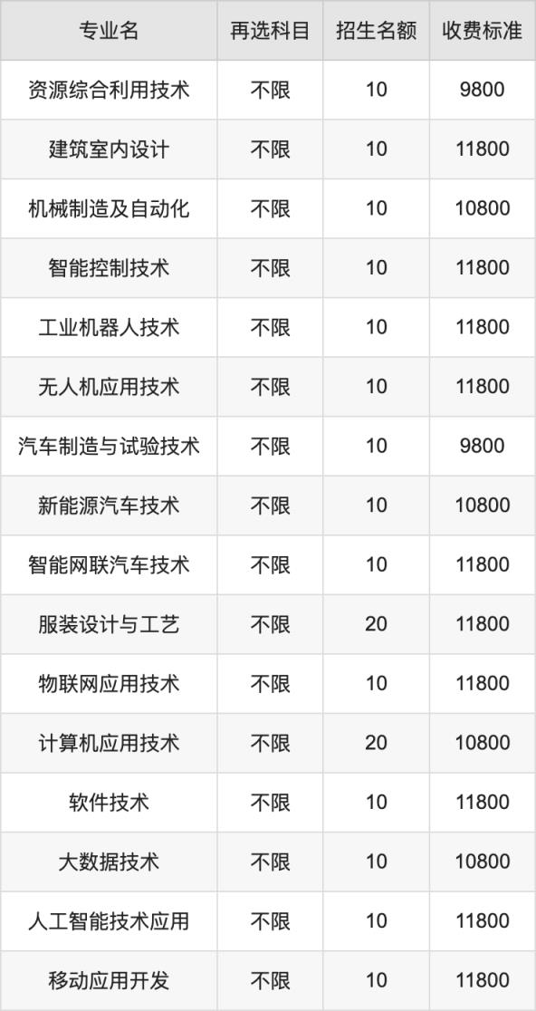 | 高职高专批 | 历史 | 智能控制技术 | 10 |