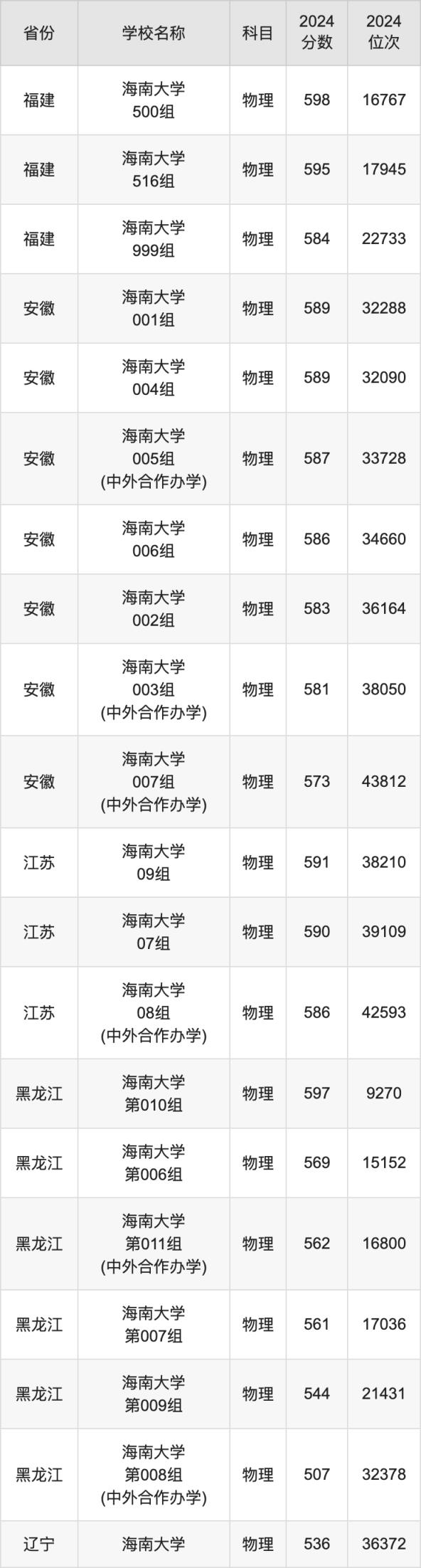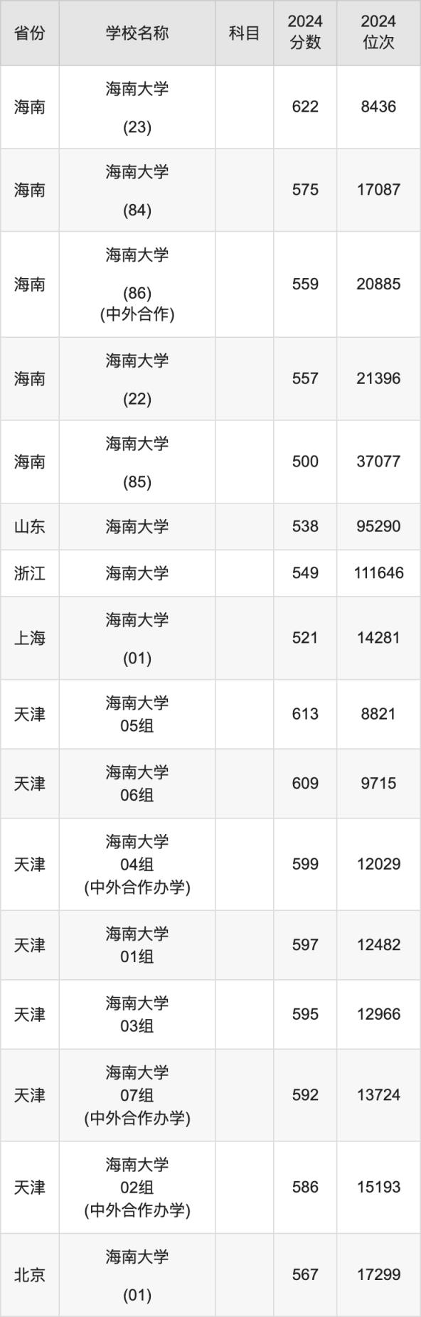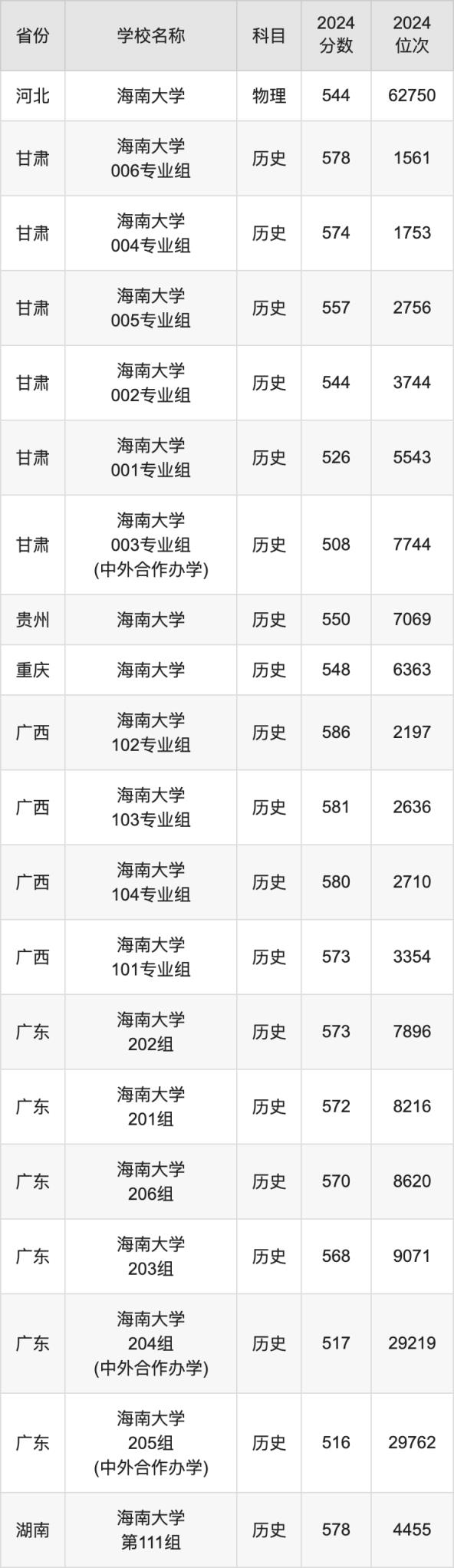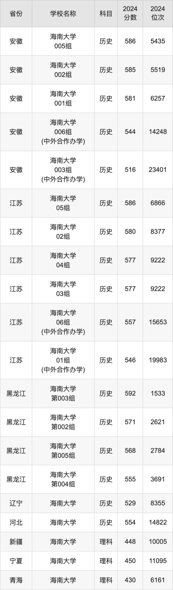 2024海南大学录取分数线汇总:全国各省最低多少分能上