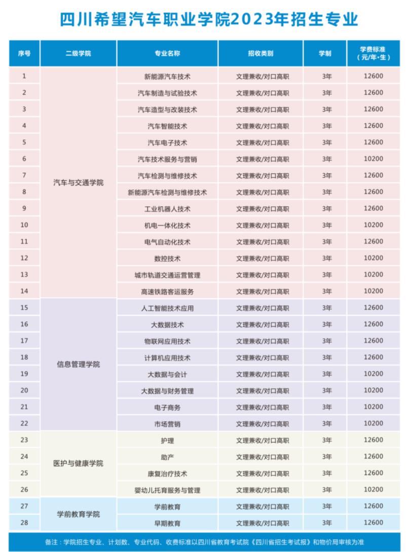 以下为大家列举了2023年部分民办大专学校的招生专业及学费标准,可供参考。