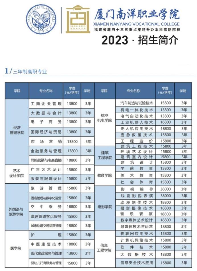 该校位于福建厦门,学费最高的专业是影视编导和戏剧影视表演专业,一年学费为38000元。