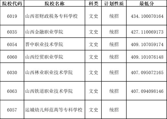 根据山西省招生考试网公布的最新的高本贯通院校录取分数线:文科407分,理科377分,这个分数线是决定考生是否能被高本贯通院校录取的重要依据。由于2024年山西高本贯通院校征集志愿录取尚未结束,下文展示第一轮投档最低分情况。