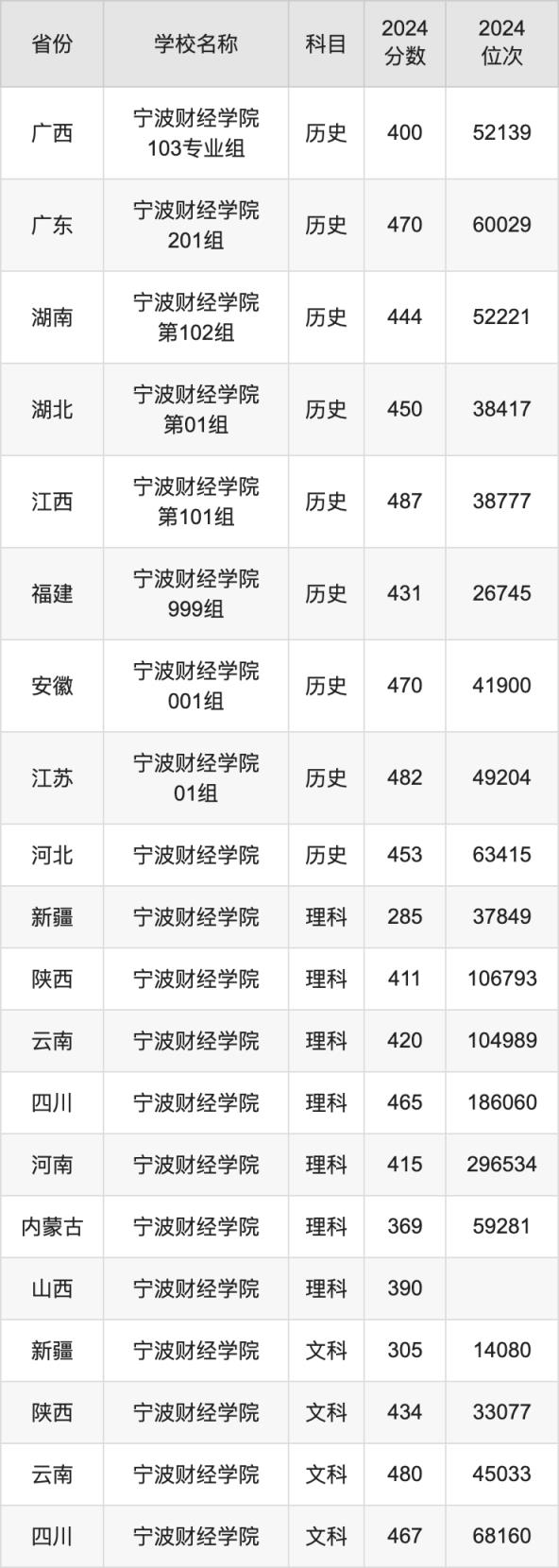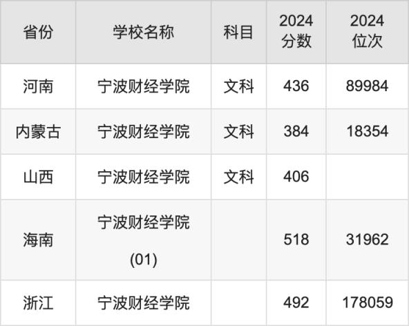 2024宁波财经学院录取分数线汇总:全国各省最低多少分能上