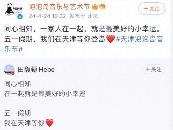 田馥甄将在劳动节期间参加天津的泡泡岛音乐与艺术节,这件事情引起网友们的强烈不满,认为她立场不坚定,甚至之前曾在社交媒体上在敏感时间发布一些耐人寻味的内容,似乎是有一些在阴阳怪气,因此不少人很讨厌她。