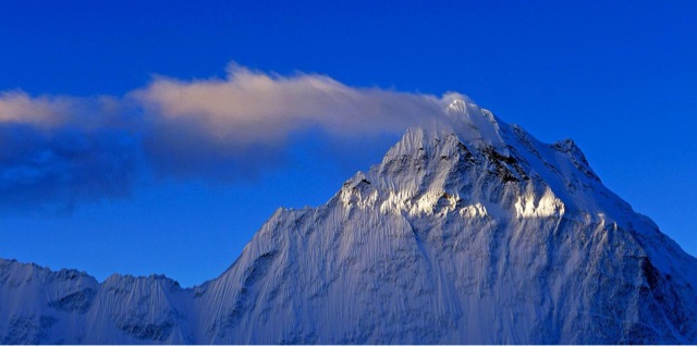 干城章嘉峰位于尼泊尔和印度边界,海拔 8586 米。它是世界第三高峰,有着 “雪中五宝” 的美誉,因为它有五个海拔超过 8450 米的峰顶。干城章嘉峰的山体雄伟壮观,峰上覆盖着厚厚的积雪,在阳光的照耀下,熠熠生辉。它的周边地区生态环境多样,有着丰富的动植物资源。
