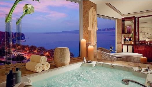日内瓦的威尔逊总统酒店,光是看名字,就知道不是一般人住的,据说这个酒店曾经招待过比尔·盖茨和迈克尔·道格拉斯。欢迎各种名人和国家元首,包括一个热浴盆和Hermè的浴室大理石浴室。这个酒店住一晚要8万美元,比阿布扎比皇宫酒店还要贵,安全不必担心,因为有一个紧急按钮,私人电梯,防弹窗和安全摄像头。