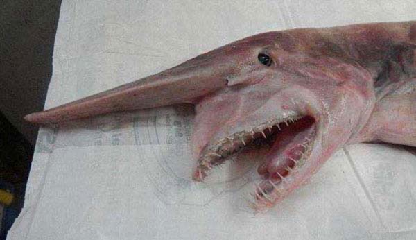 哥布林鲨也叫做欧氏剑吻鲨,这是一种很神秘的鲨鱼,主要生活在200米水深处,大家对它的了解很少。只能知道这是一种全身都是黑色的鲨鱼,主要是为了更好保护自己以及更好捕捉到猎物。据说这种鲨鱼的祖先在1.25亿年之前就存在于地球了。