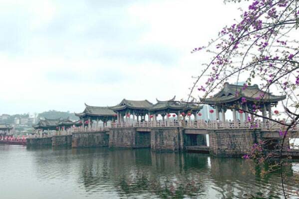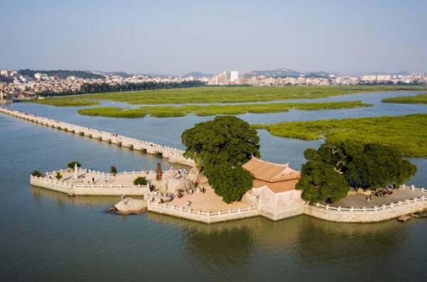 洛阳桥这处建设在福建泉州市境内的宋代古桥,是有着海内第一桥美誉的跨海梁式大石桥,全长834米的桥梁,连接着洛江区和台商投资区,在1938年被日本飞机炸毁,而后在1996年经过全面修剪恢复旧貌,成为世界文化遗产之一,也成为22处代表性古迹遗址之一。