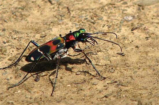 很少有人见过虎甲,要知道这种虫子不仅是昼伏夜出,而且行动迅速十分难以捕捉。虎甲的外表非常的美丽,身上还有金属光泽的坚硬外壳,眼睛很大很迷人。它们吃起害虫来简直是狼吞虎咽,很多种类的鳞翅目鞘翅目害虫都是它们捕食的对象。